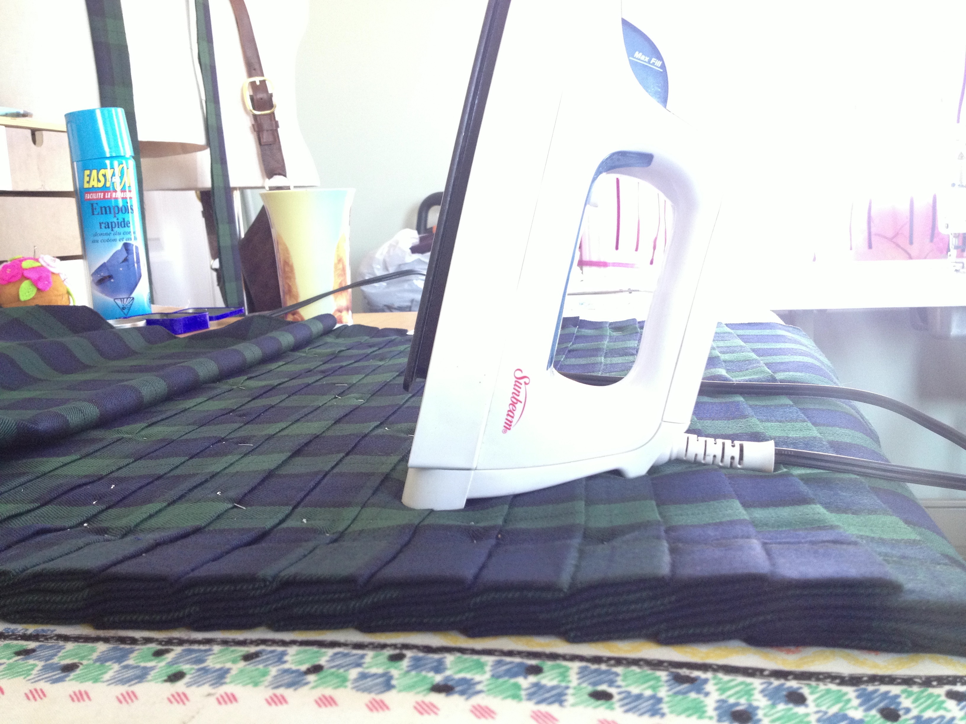20. Press everything again, remove any pins/running stitches, and then press again really well being careful not to crimp your pleats the wrong way. Admire your new kilt or run around the house with your claymore (imaginary or not).