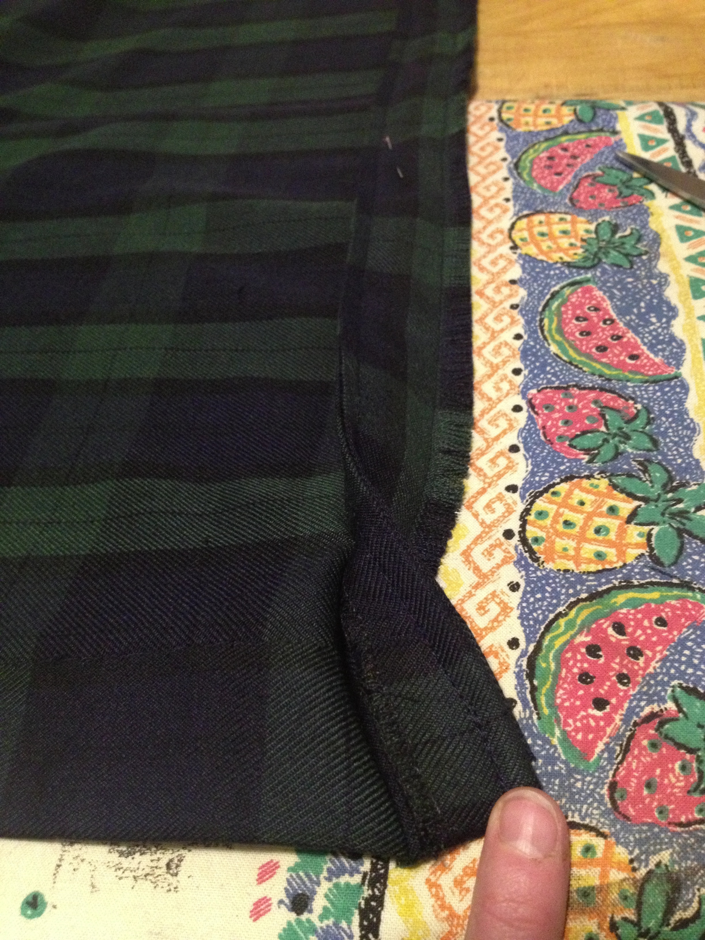 4. Lay out your tartan and give it a good press to work out any wrinkles. If the selvage edges do not match or aren’t visually appealing, you will need to hem them to match.